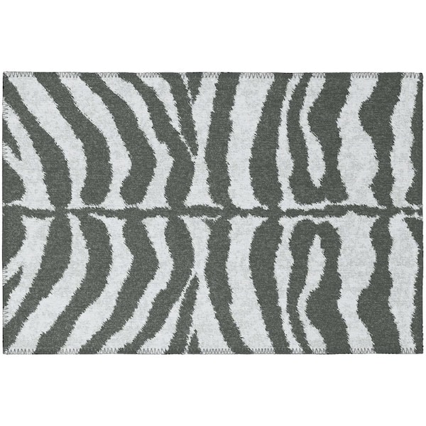 • Washable and non-skid, grey zebra animal print 2x3 accent rug