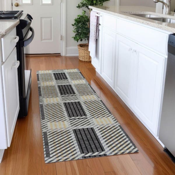 Mayfield Premium Machine Washable Abstract AMF1000 Gray 2 ft. 3 in. x 7 ft. 6 in. Runner Rug