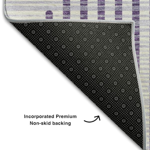 Mayfield Premium Machine Washable Abstract AMF1001 Purple 8 ft. x 8 ft. Round Rug
