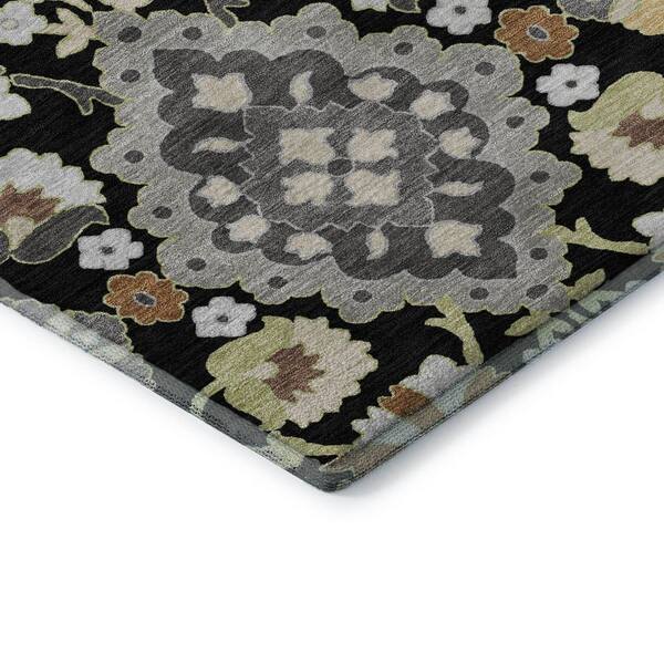 Mayfield Premium Machine Washable Abstract AMF1002 Black 3 ft. x 5 ft. Area Rug
