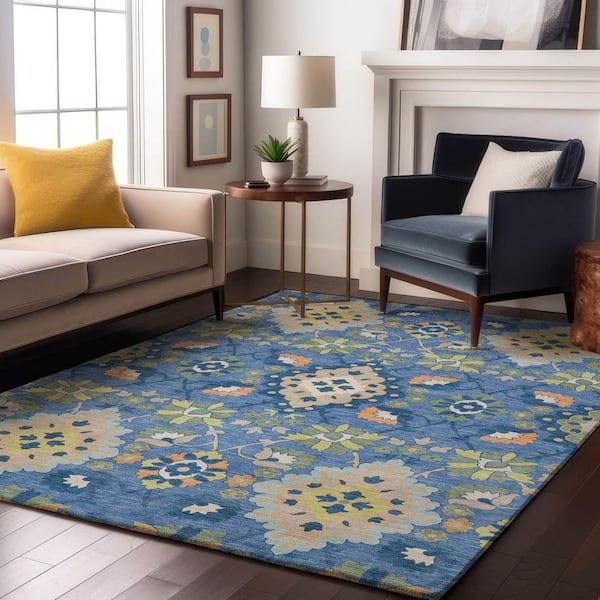 Mayfield Premium Machine Washable Abstract AMF1002 Blue 5 ft. x 7 ft. 6 in. Area Rug