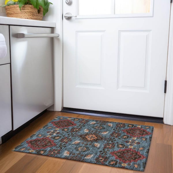 Mayfield Premium Machine Washable Abstract AMF1002 Denim 2 ft. x 3 ft. Area Rug