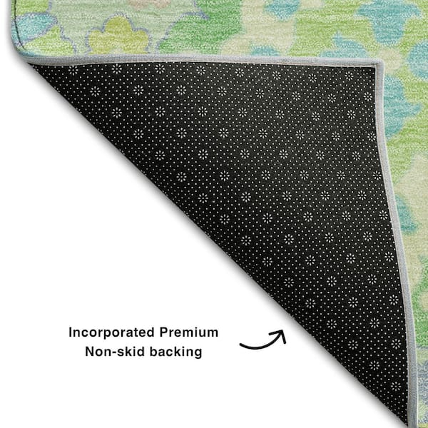 Mayfield Premium Machine Washable Abstract AMF1002 Mint 8 ft. x 8 ft. Round Rug