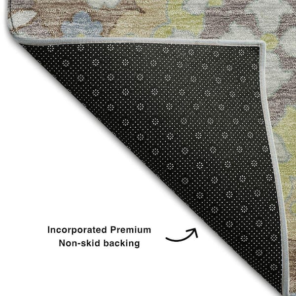 Mayfield Premium Machine Washable Abstract AMF1002 Taupe 8 ft. x 8 ft. Round Rug