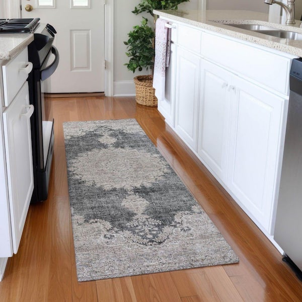 Mayfield Premium Machine Washable Abstract AMF1003 Black 2 ft. 3 in. x 7 ft. 6 in. Runner Rug