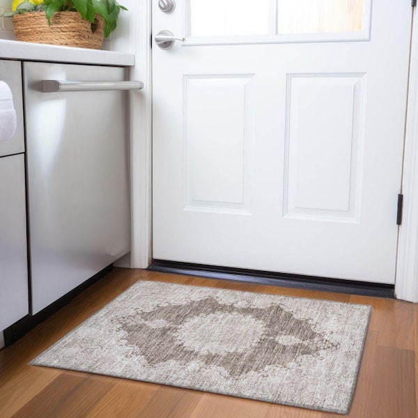 Mayfield Premium Machine Washable Abstract AMF1003 Brown 2 ft. x 3 ft. Area Rug