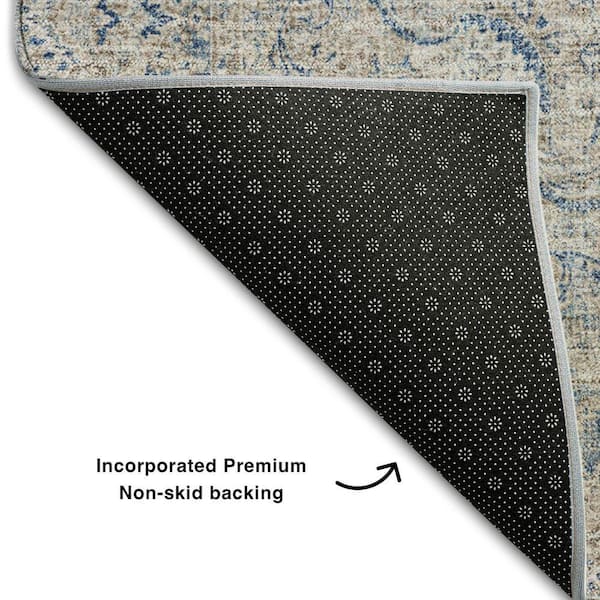 Mayfield Premium Machine Washable Abstract AMF1003 Navy 8 ft. x 8 ft. Round Rug