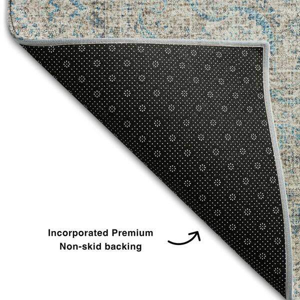 Mayfield Premium Machine Washable Abstract AMF1003 Teal 8 ft. x 8 ft. Round Rug