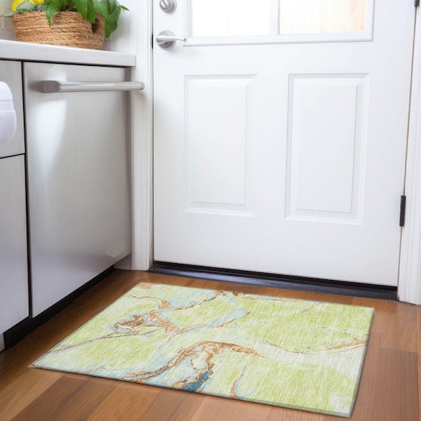Mayfield Premium Machine Washable Abstract AMF1005 Aloe 2 ft. x 3 ft. Area Rug