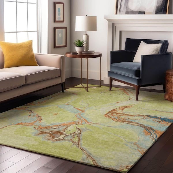 Mayfield Premium Machine Washable Abstract AMF1005 Aloe 3 ft. x 5 ft. Area Rug