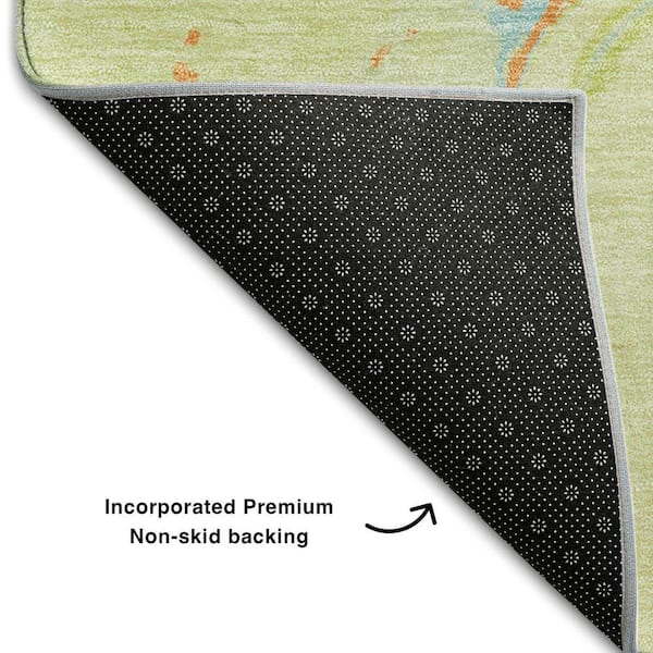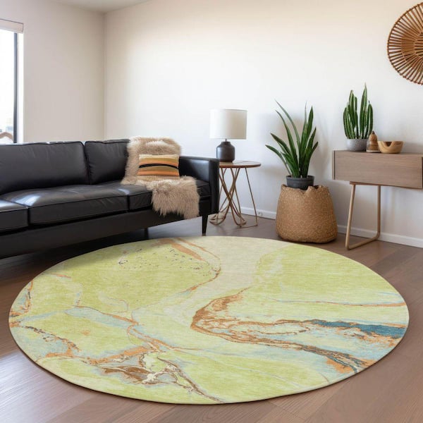 Mayfield Premium Machine Washable Abstract AMF1005 Aloe 8 ft. x 8 ft. Round Rug