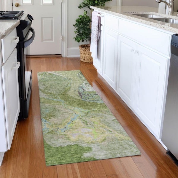 Mayfield Premium Machine Washable Abstract AMF1005 Green 2 ft. 3 in. x 7 ft. 6 in. Runner Rug