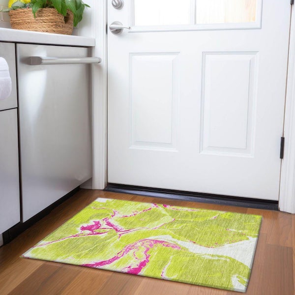 Mayfield Premium Machine Washable Abstract AMF1005 Lime 2 ft. x 3 ft. Area Rug