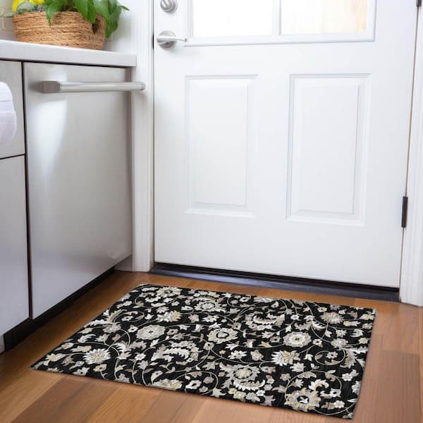 Mayfield Premium Machine Washable Abstract AMF1006 Black 2 ft. x 3 ft. Area Rug
