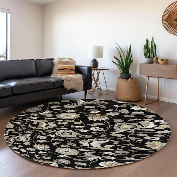 Mayfield Premium Machine Washable Abstract AMF1006 Black 8 ft. x 8 ft. Round Rug