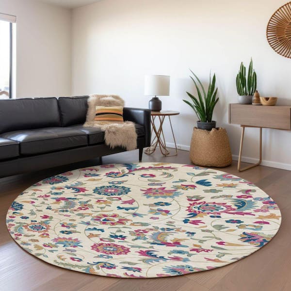 Mayfield Premium Machine Washable Abstract AMF1006 Linen 8 ft. x 8 ft. Round Rug