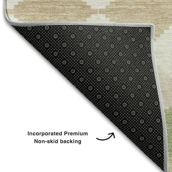Mayfield Premium Machine Washable Abstract AMF1007 Aloe 8 ft. x 8 ft. Round Rug