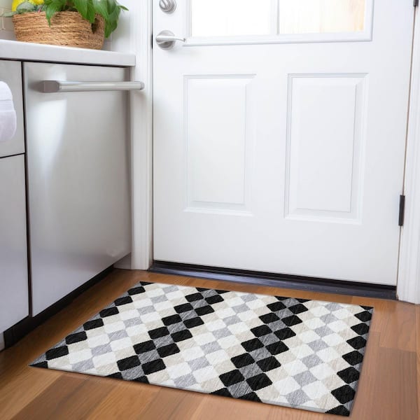Mayfield Premium Machine Washable Abstract AMF1007 Black 2 ft. x 3 ft. Area Rug