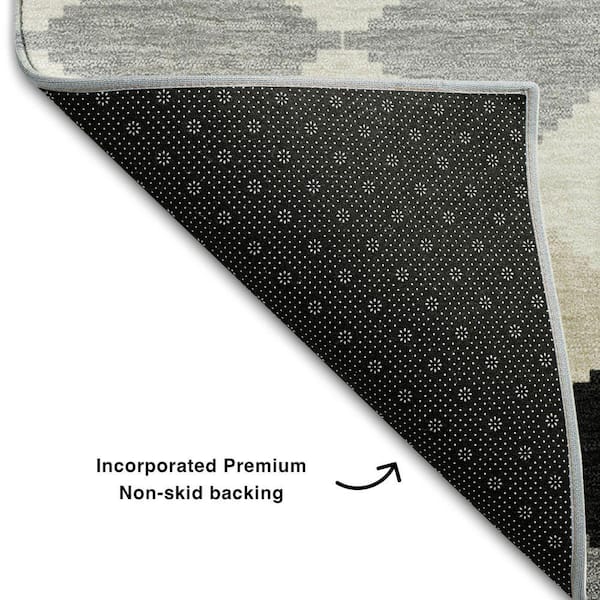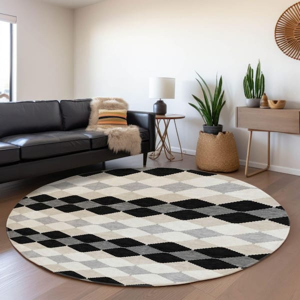 Mayfield Premium Machine Washable Abstract AMF1007 Black 8 ft. x 8 ft. Round Rug