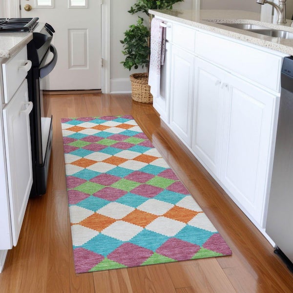 Mayfield Premium Machine Washable Abstract AMF1007 Blush 2 ft. 3 in. x 7 ft. 6 in. Runner Rug