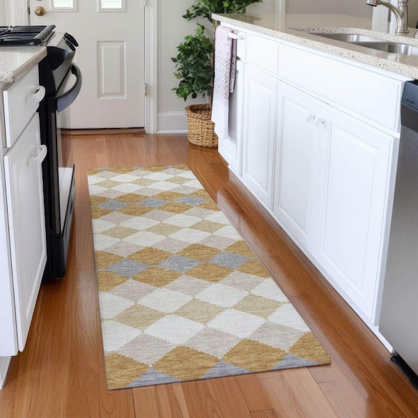 Mayfield Premium Machine Washable Abstract AMF1007 Gold 2 ft. 3 in. x 7 ft. 6 in. Runner Rug