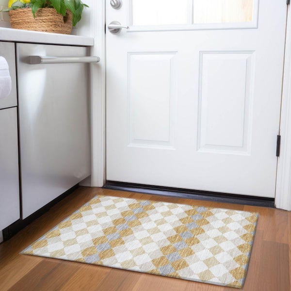 Mayfield Premium Machine Washable Abstract AMF1007 Gold 2 ft. x 3 ft. Area Rug