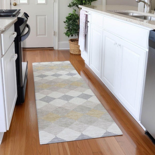 Mayfield Premium Machine Washable Abstract AMF1007 Ivory 2 ft. 3 in. x 7 ft. 6 in. Runner Rug