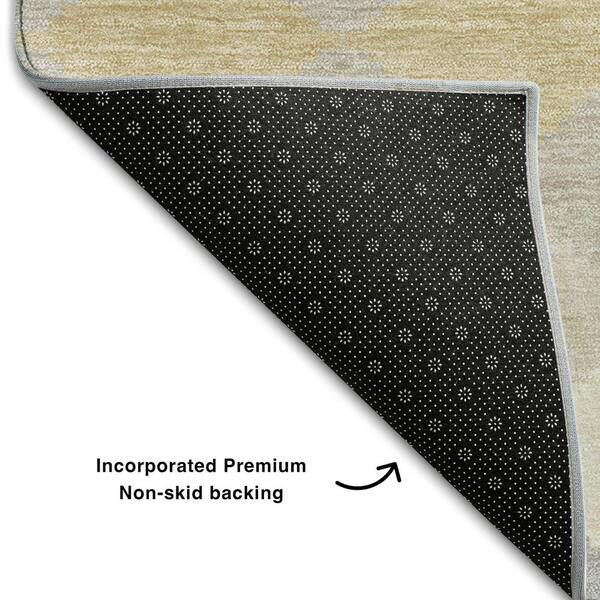 Mayfield Premium Machine Washable Abstract AMF1007 Ivory 8 ft. x 8 ft. Round Rug