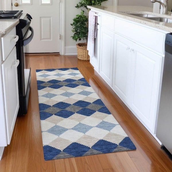 Mayfield Premium Machine Washable Abstract AMF1007 Navy 2 ft. 3 in. x 7 ft. 6 in. Runner Rug