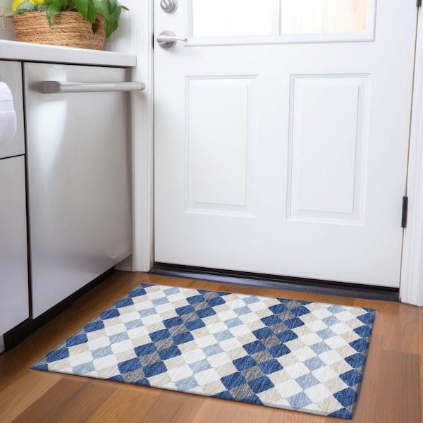 Mayfield Premium Machine Washable Abstract AMF1007 Navy 2 ft. x 3 ft. Area Rug