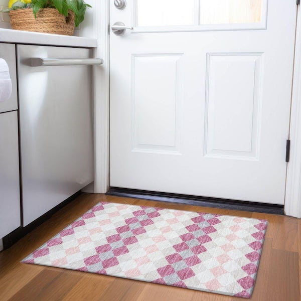 Mayfield Premium Machine Washable Abstract AMF1007 Pink 2 ft. x 3 ft. Area Rug