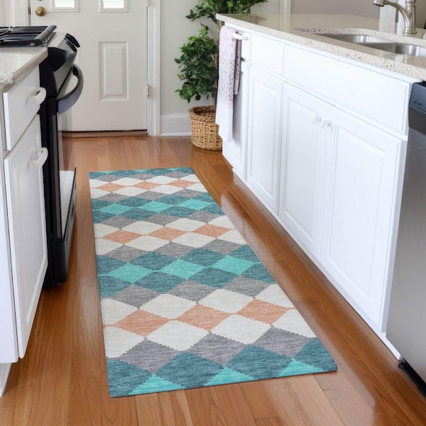 Mayfield Premium Machine Washable Abstract AMF1007 Teal 2 ft. 3 in. x 7 ft. 6 in. Runner Rug
