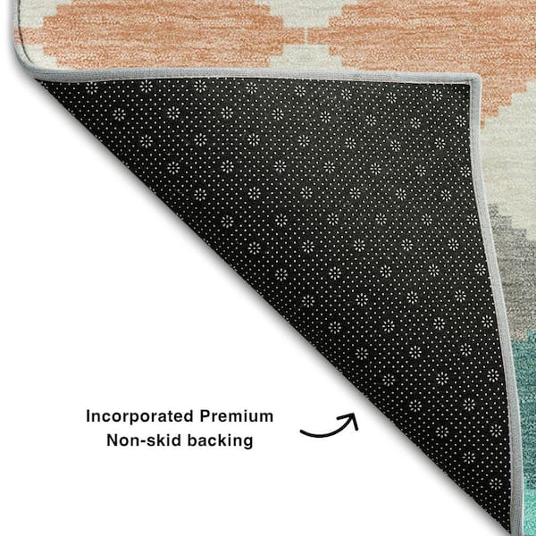 Mayfield Premium Machine Washable Abstract AMF1007 Teal 8 ft. x 8 ft. Round Rug