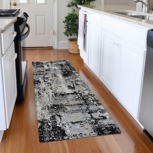 Mayfield Premium Machine Washable Abstract AMF1008 Black 2 ft. 3 in. x 7 ft. 6 in. Runner Rug