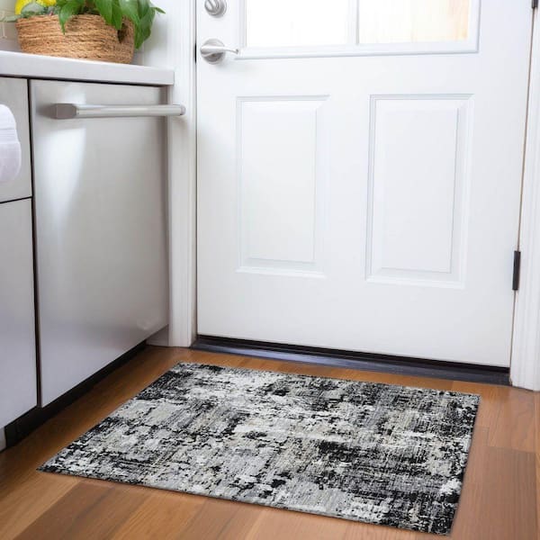 Mayfield Premium Machine Washable Abstract AMF1008 Black 2 ft. x 3 ft. Area Rug