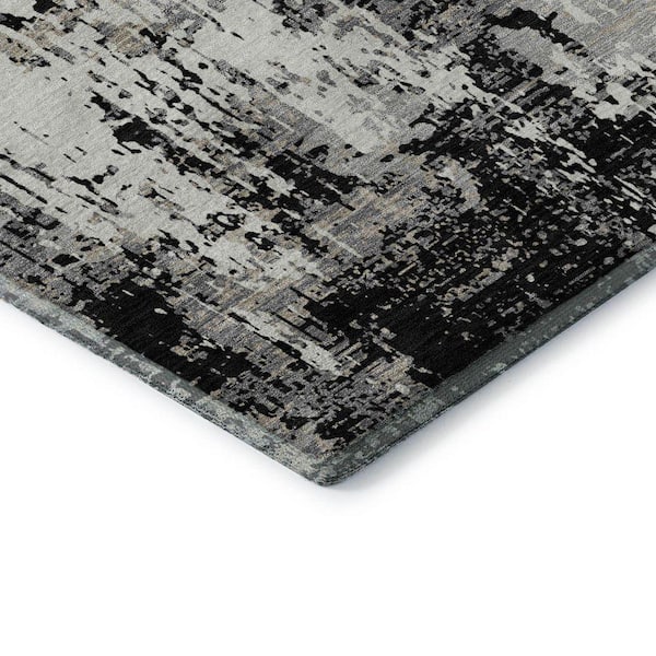 Mayfield Premium Machine Washable Abstract AMF1008 Black 8 ft. x 10 ft. Area Rug