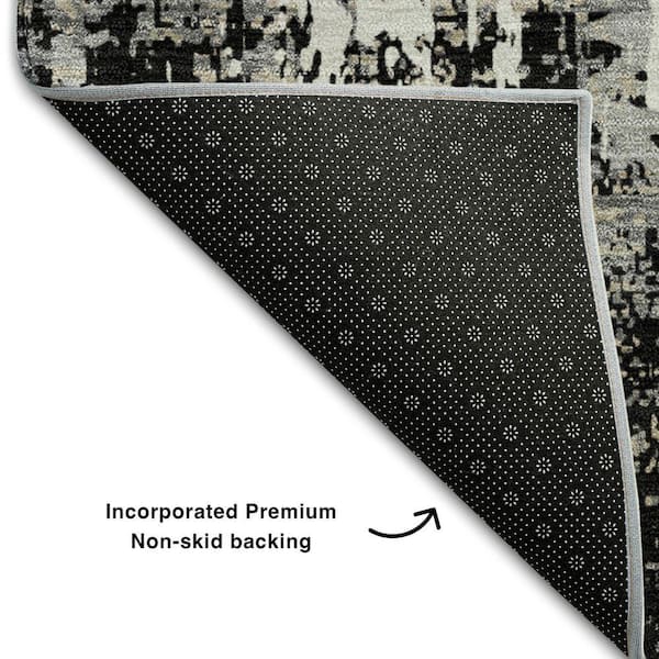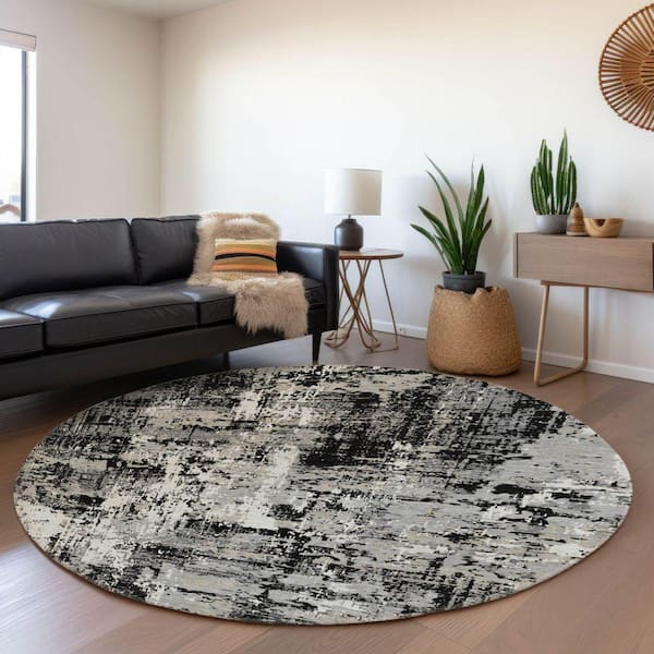 Mayfield Premium Machine Washable Abstract AMF1008 Black 8 ft. x 8 ft. Round Rug