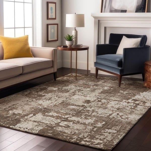 Mayfield Premium Machine Washable Abstract AMF1008 Brown 9 ft. x 12 ft. Area Rug