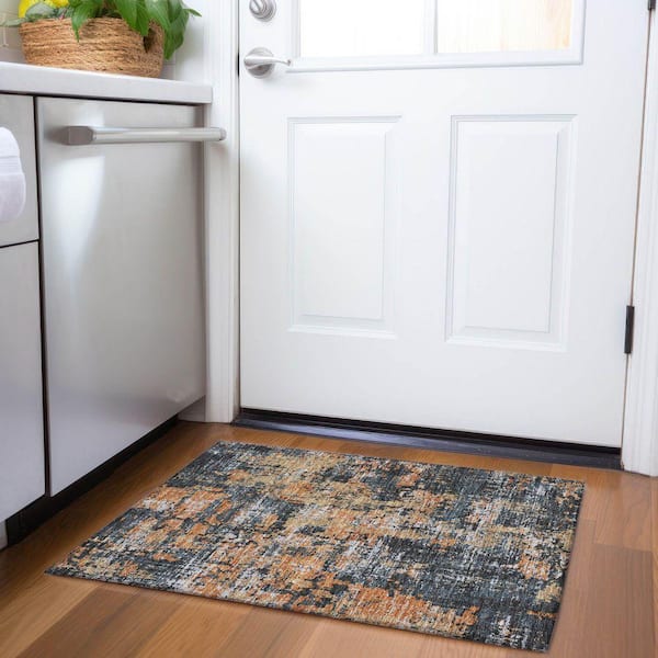 Mayfield Premium Machine Washable Abstract AMF1008 Charcoal 2 ft. x 3 ft. Area Rug