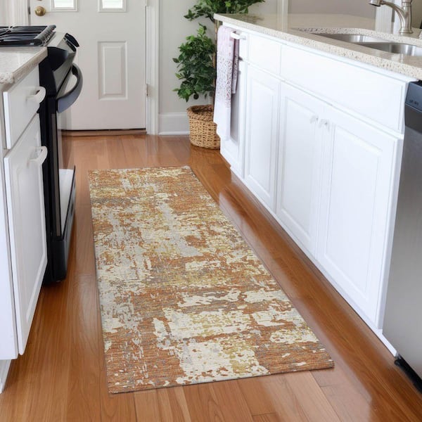 Mayfield Premium Machine Washable Abstract AMF1008 Copper 2 ft. 3 in. x 7 ft. 6 in. Runner Rug