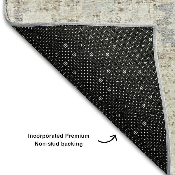 Mayfield Premium Machine Washable Abstract AMF1008 Ivory 8 ft. x 8 ft. Round Rug