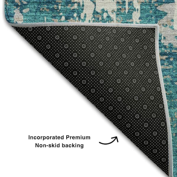 Mayfield Premium Machine Washable Abstract AMF1008 Teal 8 ft. x 8 ft. Round Rug