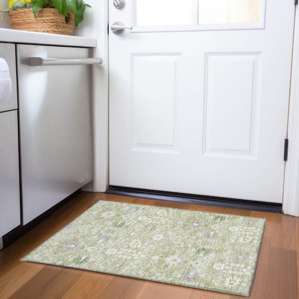 Mayfield Premium Machine Washable Abstract AMF1009 Aloe 2 ft. x 3 ft. Area Rug