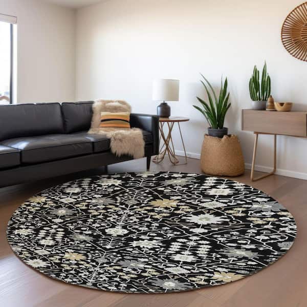 Mayfield Premium Machine Washable Abstract AMF1009 Black 8 ft. x 8 ft. Round Rug