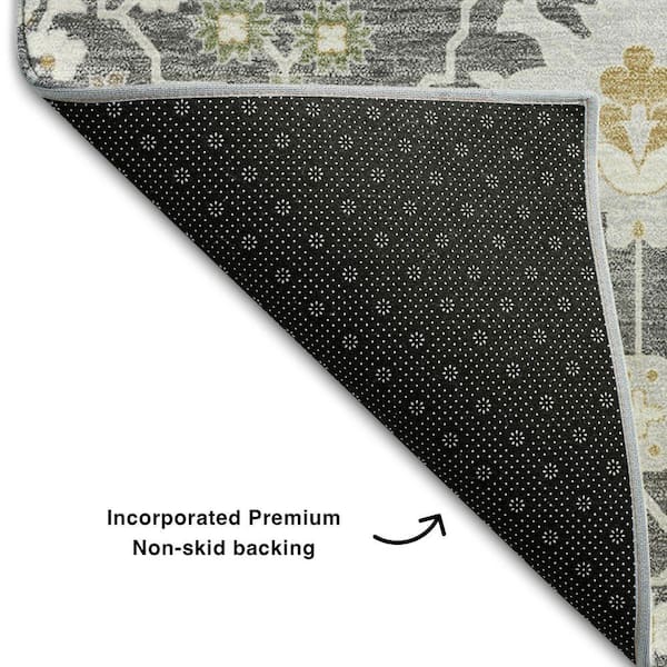 Mayfield Premium Machine Washable Abstract AMF1009 Charcoal 8 ft. x 8 ft. Round Rug