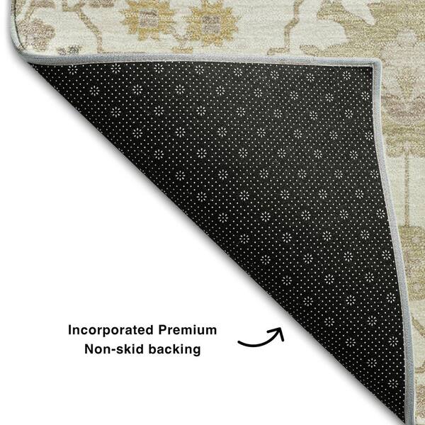 Mayfield Premium Machine Washable Abstract AMF1009 Ivory 8 ft. x 8 ft. Round Rug