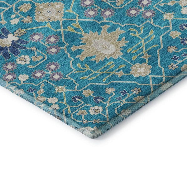Mayfield Premium Machine Washable Abstract AMF1009 Teal 2 ft. 3 in. x 7 ft. 6 in. Runner Rug