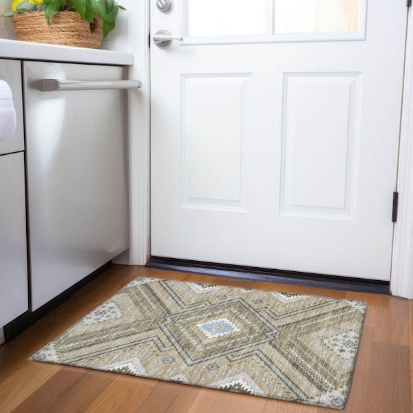Mayfield Premium Machine Washable Abstract AMF1010 Beige 2 ft. x 3 ft. Area Rug