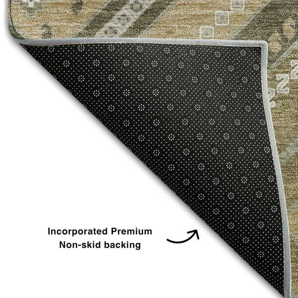 Mayfield Premium Machine Washable Abstract AMF1010 Beige 8 ft. x 8 ft. Round Rug