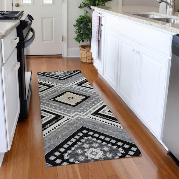 Mayfield Premium Machine Washable Abstract AMF1010 Black 2 ft. 3 in. x 7 ft. 6 in. Runner Rug
